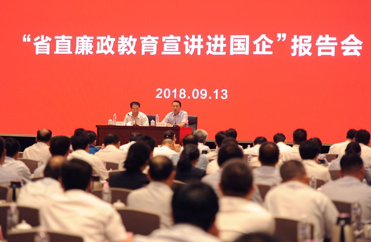 9月13日,“省直廉政教育宣講進國企”活動進行第三站,走進魯商集團。省直廉政教育宣講團成員、省委第二巡視組組長萬志博作了題為《以習近平新時代中國特色社會主義思想為指導 不斷推動全面從嚴治黨向縱深發展》的廉政宣講報告。魯商集團黨委書記、董事長高洪雷主持。