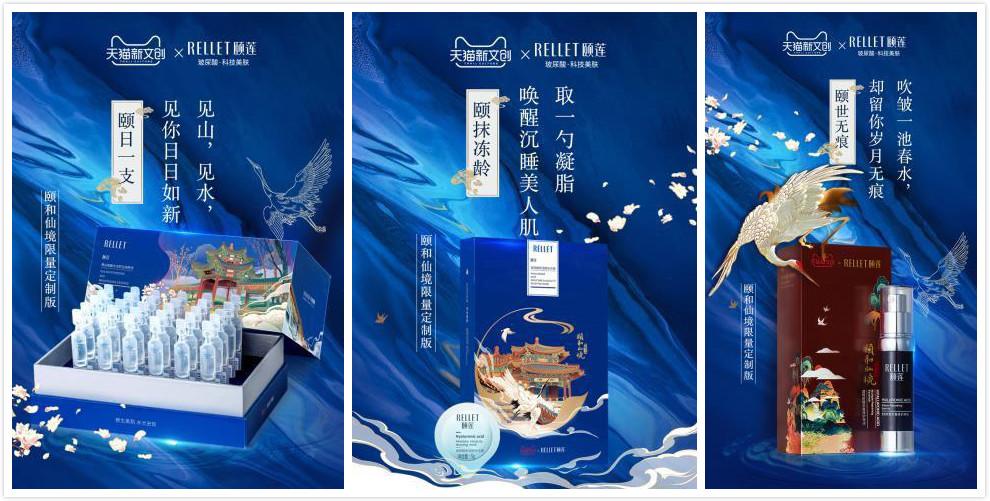 作為頤和園文創的優秀代表之一,福瑞達美業旗下主打科技美膚的玻尿酸品牌頤蓮,和立白、顧家等眾多中國優秀品牌一起亮相展覽。展出的“頤和仙境”系列產品,巧妙融合頤和園風物、渲染國風意蘊,將如夢如幻的頤和園美景與行業頂級玻尿酸護膚應用科技完美結合,賦予傳統文化以新的活力。產品主題插畫均取自于頤和園長廊等古代園林,以充滿古典韻味的玄色、靛藍等作為底色,又以金色線條為主勾勒出亭臺水榭,與本次數字光影藝術展相得益彰、交相輝映。別具一格的設計,也使得“頤和仙境”成為最具特色的參展品牌之一。
