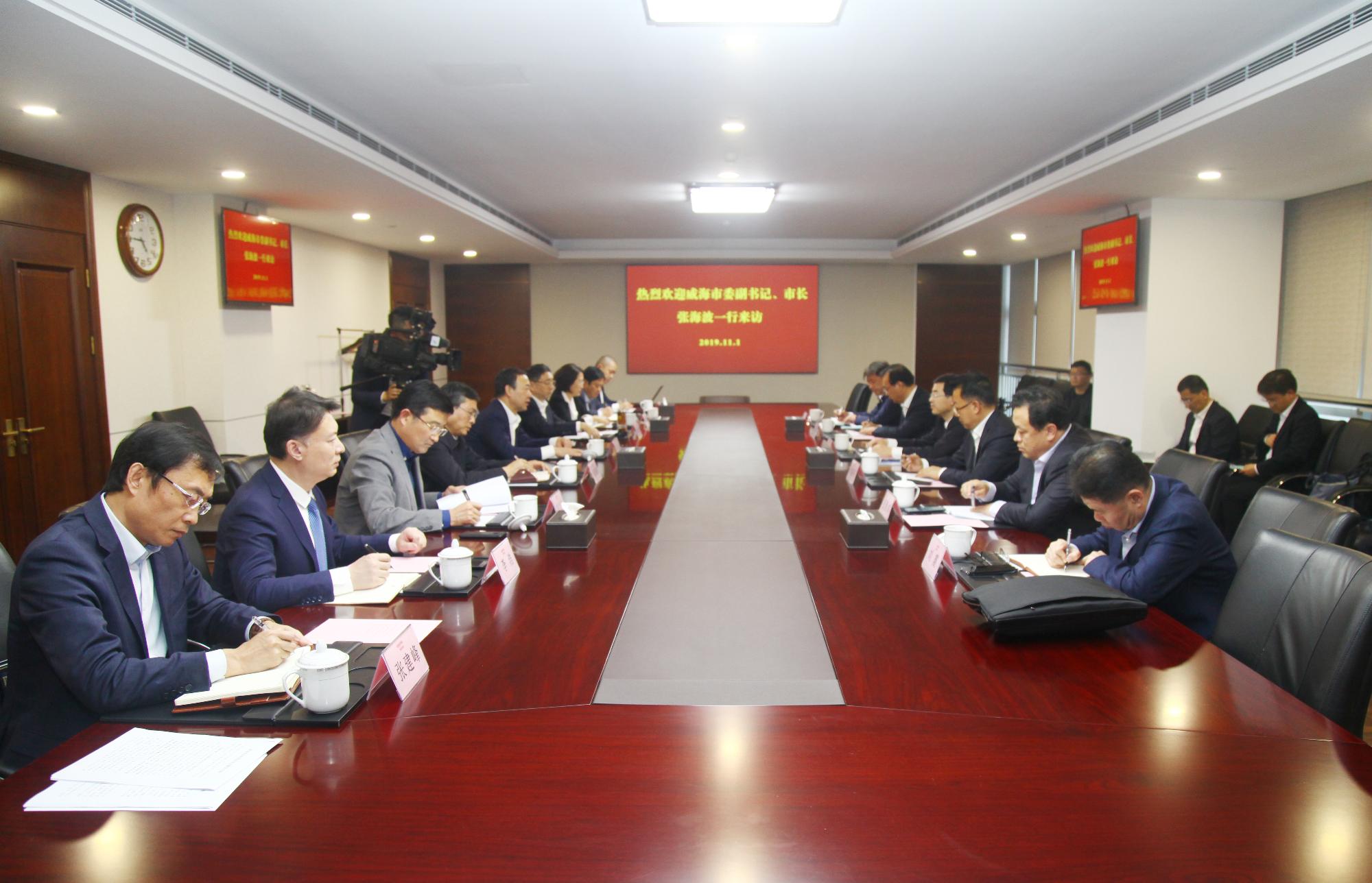 威海市南海新區、市商務局、市文旅集團,魯商集團辦公室、省文旅集團、魯商發展、魯商鄉村發展集團、山東文旅景區投資集團負責人參加會議。