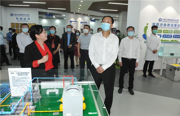 孫堯一行首先來到山東商院商貿(mào)流通服務基地,學校相關負責人匯報了校企對接、讓老師和學生“把論文寫在山東大地上”的故事。聽取該校“科研+教研+服務”一體化教學模式以及所產(chǎn)生的成果匯報后,孫堯表示贊許。
