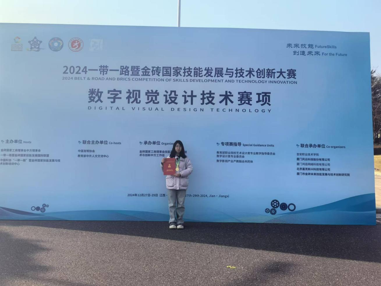 近日,2024年一帶一路暨金磚國家技能發展與技術創新大賽數字視覺設計技術賽項(高職組)國內總決賽順利舉行。山東城市服務職院學生郭冰琛憑借出色的技能和創新能力,斬獲數字視覺設計技術賽項國賽一等獎。