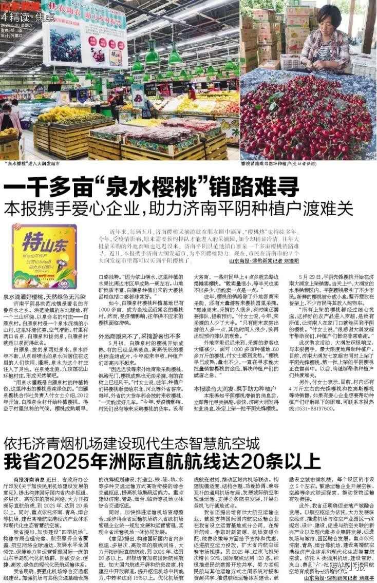 公益助農齊魯行,為愛下單“特山東”。山東商報傾力為扎根齊魯大地的“鄉村好品”代言,為打造鄉村振興的齊魯樣板助力。在由各種平臺得知農戶求助信息并溝通核實后,報社會派出“文字+直播團隊”,利用多個報道和銷售平臺啟動公益助農活動。活動形式除了“帶貨直播”,還包括報紙報道、將產品上架山東商報官方微店等,多管齊下,凸顯合力,為滯銷農產品打開銷路。